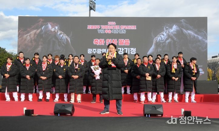 강기정 광주시장은 “한강 작가 노벨문학상 수상 등 광주에 기쁜 일이 계속되고 있는 가운데 KIA 타이거즈 한국시리즈 우승은 ‘광주의 힘’이다”며 “선수 개인의 영광을 넘어 광주의 전반적인 에너지를 끌어올리고 활력을 더했다. 내년에도 광주시민들과 함께 뜨겁게 응원하겠다”고 밝혔다.