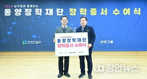 정안뉴스 기자 | 라인그룹의 동양장학재단이 지역 인재 육성을 위해 광주 남구청에 2년 연속으로 통 큰 장학금을 기부했다.