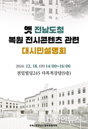 옛전남도청복원협의회는 이날 설명회에서 지난 9월 공개했던 전시 콘텐츠의 변경 사항과 시민 의견수렴 내용 등을 보고할 예정이다. 또 시민들과 질의응답을 통해 전시 내용에 대한 이해를 돕고, 건의 사항도 수렴한다.