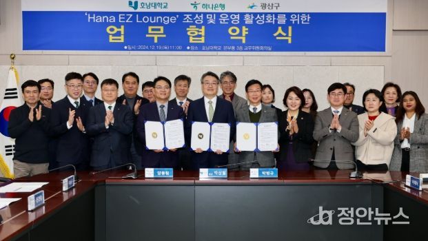 정안뉴스 기자 | 광주 광산구는 19일 호남대학교 대학본부에서 호남대학교(총장 박상철), 하나은행(은행장 이승열)과 지역사회의 상생과 소통을 위한 커뮤니티 공간조성에 협력하는 업무협약을 체결했다.
