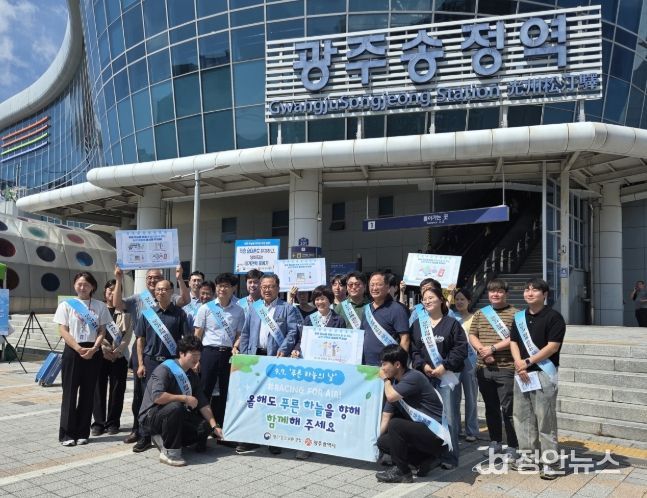 정안뉴스 안정주 기자 | 광주광역시는 ‘푸른 하늘의 날’(9월7일)을 앞두고 3일 광주송정역에서 영산강유역환경청, 한국환경공단 등 5개 기관과 함께 대기환경 개선 홍보 캠페인을 진행했다.