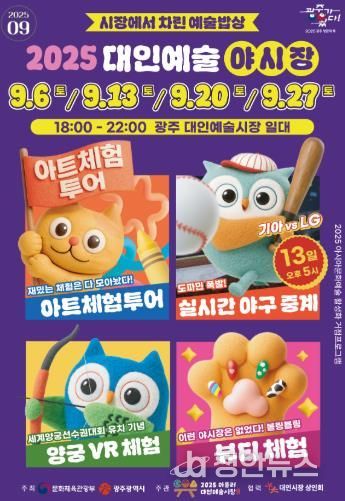 광주광역시는 9월6일부터 11월22일까지(추석연휴 10월 4일과 11일 제외) ‘2025년 하반기 대인예술야시장’을 총 10회 운영한다.