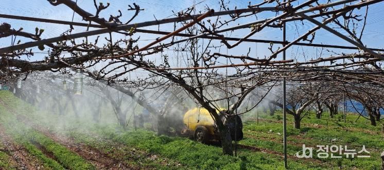 지원 대상은 콩·복숭아·시설고추·단감·부추·포도 등 총 380농가 127.3㏊이며, 지원 방법 및 시기는 9개 지역농협과 방제협의회를 통해 결정했다.