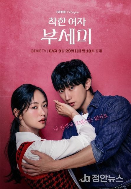 오는 9월 29일(월) 첫 공개될 지니 TV 오리지널 ‘착한 여자 부세미’(연출 박유영/ 극본 현규리/ 기획 KT스튜디오지니/ 제작 크로스픽쳐스, 트리스튜디오)에서 스페셜 포스터로 'NO 로맨스' 인생을 선언한 김영란(전여빈 분)과 싱글대디 전동민(진영 분)의 아슬아슬한 밀당을 예고하고 있다.
