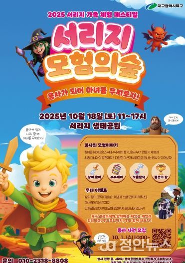 정안뉴스 안정주 기자 | 대구 북구청은 오는 10월 18일 동호동 서리지 생태공원 일원에서 '2025 서리지 가족 체험 페스티벌 – 서리지, 모험의 숲'을 개최한다고 밝혔다.