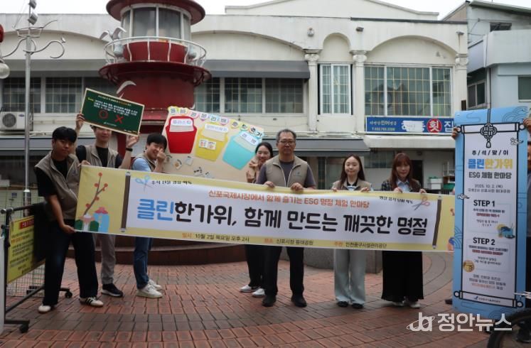 정안뉴스 안정주 기자 | 인천중구시설관리공단 임직원은 지난 2일 신포국제시장에서 추석맞이 친환경·청렴 문화 확산을 위한 ‘클린 한가위’ 캠페인을 진행했다.