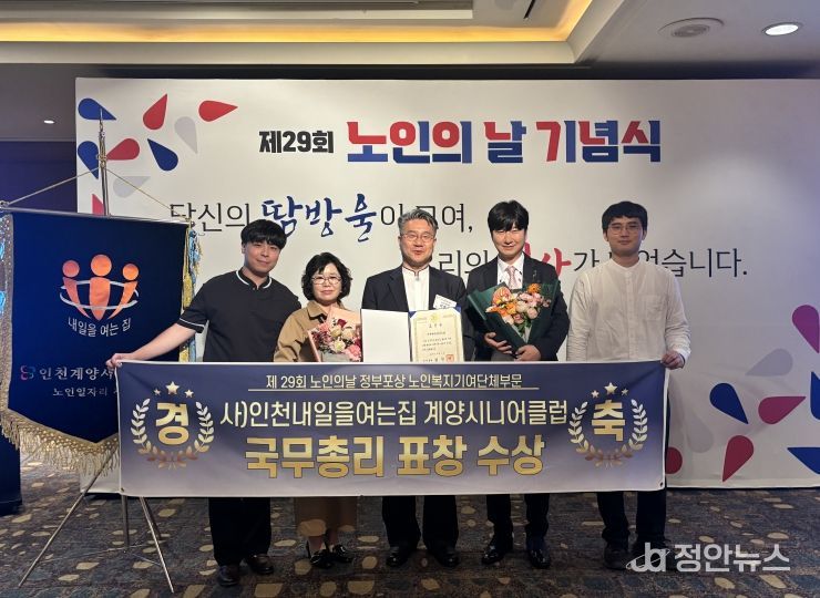 정안뉴스 안정주 기자 | 인천 계양구는 지난 2일 2025년 ‘노인의 날’을 맞아 노인복지 발전에 기여한 공로를 인정받아 인천계양시니어클럽(관장 손재오)이 국무총리 표창을 수상했다고 밝혔다.