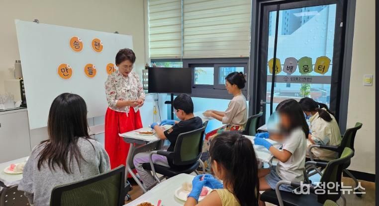 이번 체험은 박미희 센터장이 아이들에게 직접 송편의 의미와 만드는 방법을 설명하며 소통하는 시간을 가졌다.