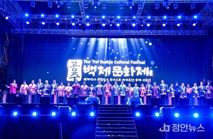 드론라이팅쇼는 총 1,071대의 드론이 밤하늘을 수놓는 장관을 연출하며, 백제문화제의 시작을 화려하게 장식했다.