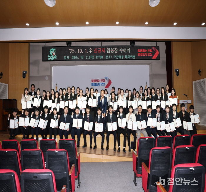 정안뉴스 안정주 기자 | 오산시는 지난 10월 2일 오산시청 대회의실에서 2025년 신규 임용 공직자 52명을 대상으로 임용장 수여식을 개최했다고 밝혔다.