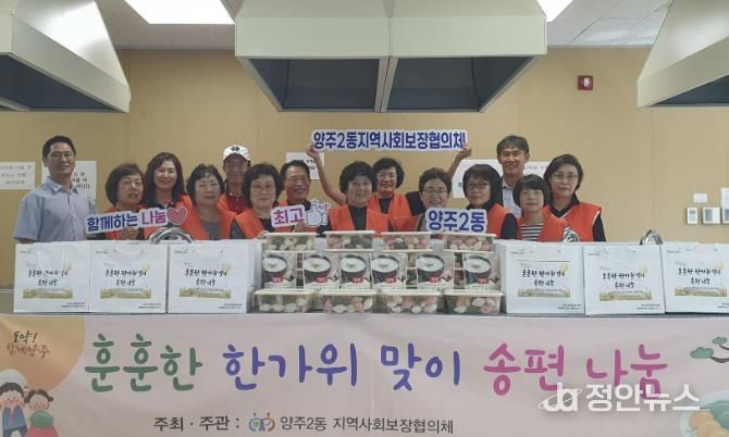 정안뉴스 안정주 기자 | 양주시 양주2동 지역사회보장협의체가 최근 추석을 맞아 관내 취약계층 100가구를 대상으로 송편을 전달했다.