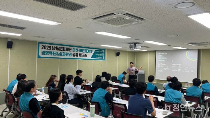 정안뉴스 안정주 기자 | 인천 남동문화재단은 남동소래아트홀에서 재단 직원들이 참석한 가운데 ‘2025 新 미션·비전 체계 및 경영목표․성과관리 공유 워크숍’을 했다고 13일 전했다.