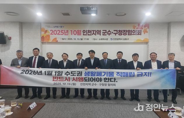 정안뉴스 안정주 기자 | 인천광역시는 군・구 단체장과 한마음 한뜻으로 수도권 생활폐기물 직매립 금지 시행에 대한 의지를 밝혔다.