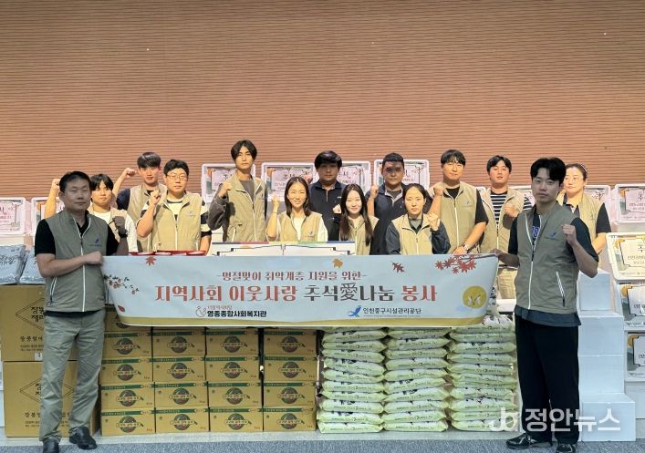 정안뉴스 안정주 기자 | 인천중구시설관리공단(이사장 손영식)은 추석 명절을 앞둔 지난 9월 30일 영종지역 취약계층을 지원하는 ‘지역사회 이웃사랑 추석愛나눔 봉사활동’을 진행했다고 밝혔다.