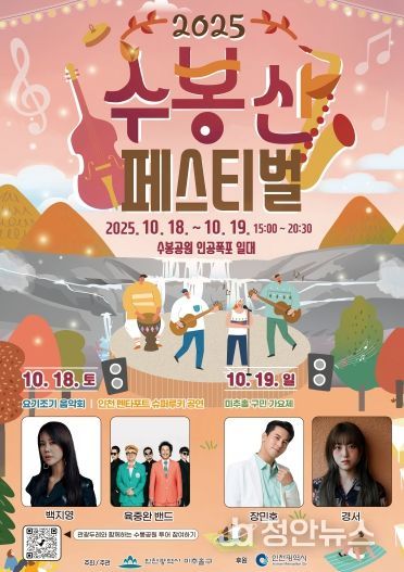 정안뉴스 안정주 기자 | 인천 미추홀구는 수봉공원 인공폭포 일대에서 오는 18일부터 이틀간 ‘제5회 수봉산 페스티벌’을 개최한다.