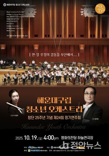 정안뉴스 황정혜 기자 | 해운대구립청소년오케스트라(지휘 정우영)는 오는 19일 오후 4시 영화의전당 하늘연극장에서 ‘제24회 정기연주회’를 개최한다.