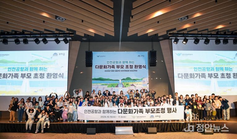 정안뉴스 안정주 기자 | 인천국제공항공사(사장 이학재)는 다문화 가정의 한국사회 정착과 사회융합을 지원하기 위한 ‘인천공항과 함께하는 다문화 가족 부모 초청 사업’을 진행한다고 16일 밝혔다.