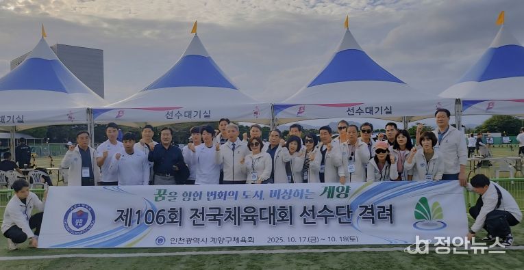 정안뉴스 안정주 기자 | 인천광역시 윤환 계양구청장은 10월 17일 부산을 방문해 ‘제106회 전국체육대회’에 출전한 계양구 선수단을 격려했다.