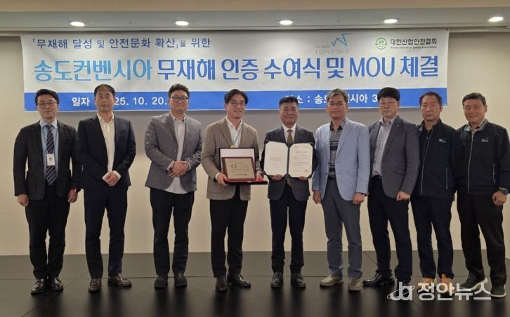 정안뉴스 안정주 기자 | `인천경제자유구역청과 인천관광공사(사장 백현)가 운영하는 송도컨벤시아는 494일 동안 산업재해 없는 안전한 사업장 운영 성과를 달성해, 20일 대한산업안전협회로부터 무재해 인증을 획득했다.