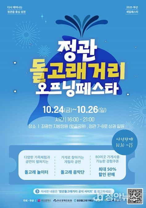 정안뉴스 황정혜 기자 | 부산시는 오는 24일부터 26일까지 3일간 '2025 부산세일페스타 '정관돌고래거리 오프닝페스타''를 좌광천 지방정원(윗골공원) 및 상권 일원(정관 7~8로)에서 개최한다고 밝혔다.