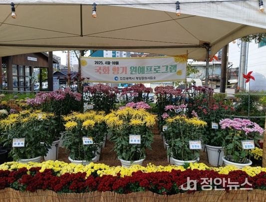 정안뉴스 안정주 기자 | 인천광역시 계양공원사업소는 10월 20일부터 10월 27일까지 미추홀구 수인선 바람길 숲 일대에서 ‘국화 향기 원예프로그램’ 수강생 작품전시회를 개최한다고 밝혔다.