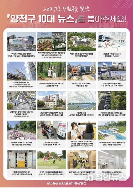 정안뉴스 안정주 기자 | 양천구는 2025년 한 해 동안 구민의 삶에 긍정적인 변화를 이끈 주요 사업 중 구민이 가장 공감하는 뉴스를 선정하는 ‘2025년 양천구 10대 뉴스’ 투표를 10월 27일부터 11월 14일까지 진행한다고 밝혔다.