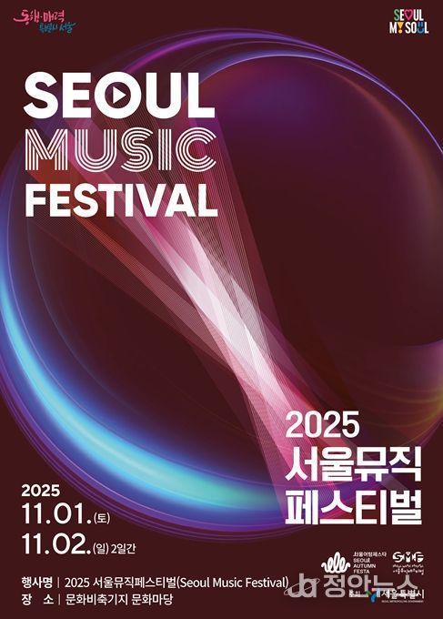 정안뉴스 안정주 기자 | 서울시 대표 음악축제 '2025 서울뮤직페스티벌'이 11월 1일부터 11월 2일까지 2일간 문화비축기지(마포구)에서 개최된다. 올해 축제는 ‘매력, 서울에 빠지다’, ‘동행, 서울에 물들다’를 콘셉트로 유명 뮤지션부터 실력파 밴드의 라이브 공연까지 다양한 장르의 음악 무대와 부대 행사로 구성된다.
