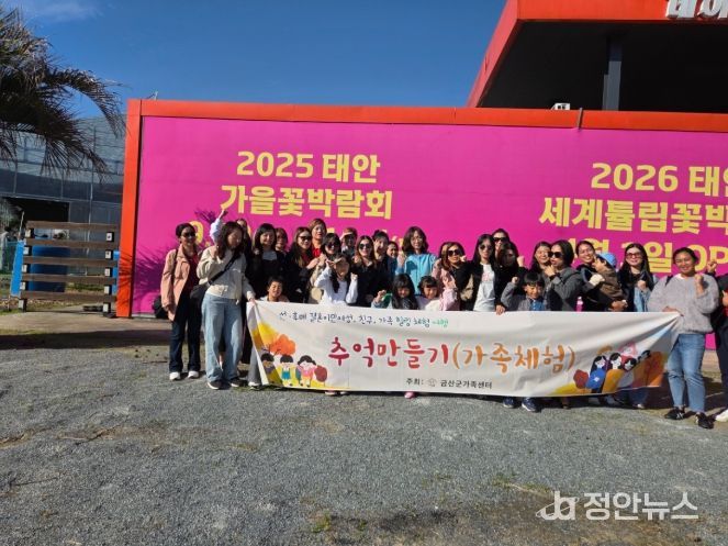 정안뉴스 황도연 기자 | 금산군가족센터 선·후배 결혼이민여성은 지난 25일 태안군 가을꽃바람회장에서 추억만들기 체험을 진행했다.