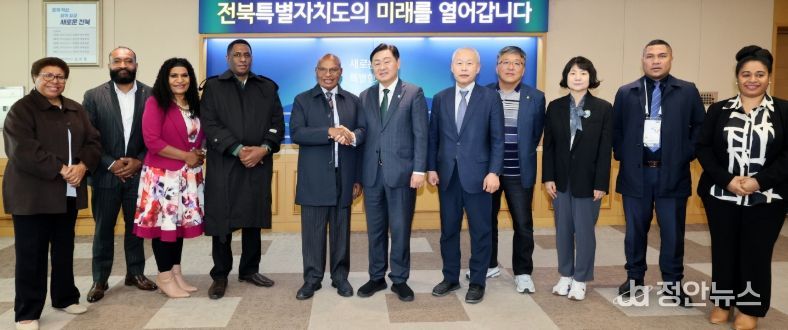 정안뉴스 안정주 기자 | 전북특별자치도는 10월 27일 파푸아뉴기니 국제무역·투자부 리차드 마루(Richard Maru) 장관을 단장으로 한 대표단이 전북도를 공식 방문해, 김관영 도지사와 면담을 갖고 농업, 교육, 국제개발협력 등 다양한 분야의 협력 확대 방안을 논의했다고 밝혔다.