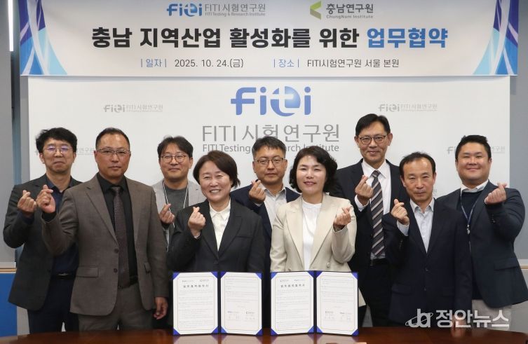 정안뉴스 황도연 기자 | 충남연구원은 24일 서울 FITI 본원에서 FITI시험연구원과 ‘충남 지역산업 활성화를 위한 전략적 업무협약’을 체결했다.
