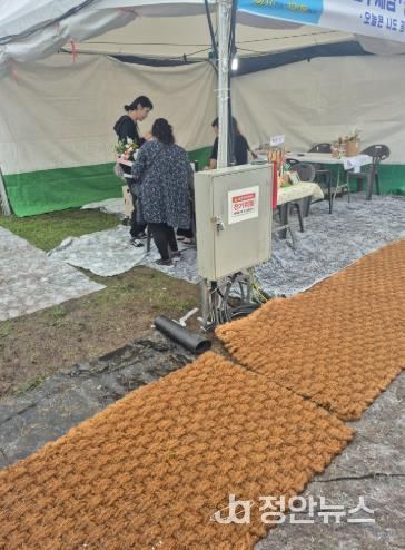 특히, 배전반의 설치 위치가 보행 동선과 가까워 위험에 군민들이 노출됐으며, 비가 내린 행사장 바닥은 진흙으로 젖어 미끄러짐과 감전사고 위험이 동시에 존재했다.