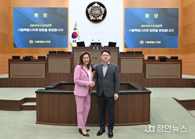 정안뉴스 안정주 기자 | 서울특별시의회 환경수자원위원회 위원으로 활동 중인 김춘곤 의원(국민의힘, 강서4)은 10월 27일 서울시의회를 방문한 미국 캘리포니아주 요바린다시의 제니스 림(Janice Lim) 시장과 만나 웰니스 정책과 도시 간 협력 방안에 대해 환담을 나눴다.
