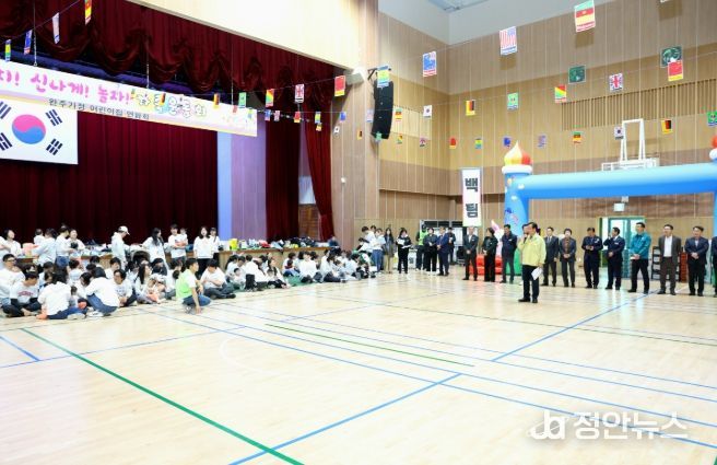 정안뉴스 안정주 기자 | 완주군어린이집연합회 가정분과가 29일 삼례읍 문화체육센터에서 ‘제3회 한마음 가족 운동회’를 개최하고 아이들과 부모가 함께 어울리는 화합의 시간을 가졌다.