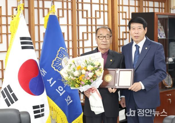 정안뉴스 안정주 기자 | 전북특별자치도시군의회의장협의회(회장 남관우 전주시의회 의장)는 제13회 지방자치의날을 기념해 29일 전주시의회 의장실에서 박동열 전주 금암동 주민자치위원장에게 지방자치발전 유공자 표창을 했다.