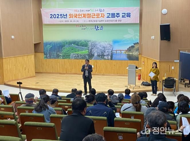 29일 완주군은 농업기술센터 강당에서 2025년 동계 시설원예 농가대상으로 ‘외국인 계절근로자 고용주 교육’을 실시했다.