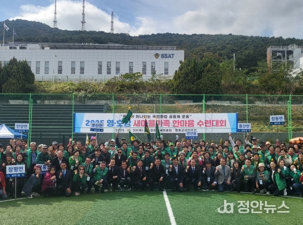 정안뉴스 황정혜 기자 | 부산 영도구새마을회는 지난 10월 30일 청학 조내기운동장에서 전남 장흥군새마을회와 함께 ‘2025 영호남 새마을가족 한마음 수련대회’를 성황리에 개최했다고 밝혔다. 이날은 양 지역 새마을지도자 600여 명이 참여해 동서화합의 뜻을 나눴다.
