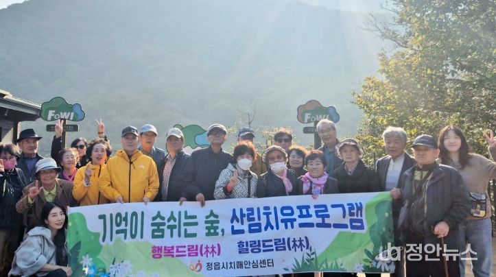 정안뉴스 안정주 기자 | 정읍시 치매안심센터가 지난달 31일 치매 환자와 그 가족 25여 명을 대상으로 산림치유프로그램 ‘기억이 쉼쉬는 숲’을 운영했다.
