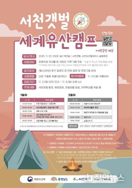 이번 캠프는 11월 23일부터 11월 24일까지 서천갯벌과 서천 소재 캠핑장에서 1박 2일간 진행되며, 해양수산부 해양보호구역사업의 일환으로 서천군이 주최하는 행사로 추진된다.