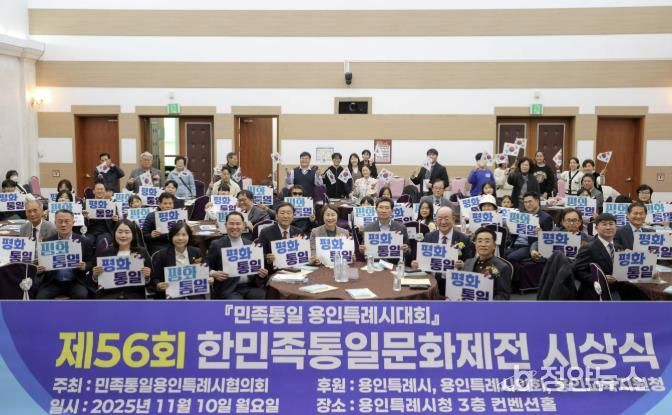 정안뉴스 안정주 기자 | 용인특례시는 10일 시청 컨벤션홀에서 민족통일 용인특례시협의회 주관으로 ‘민족통일 용인특례시대회와 제56회 한민족통일문화제전 시상식’이 열렸다고 밝혔다.