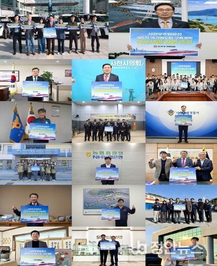 정안뉴스 김재홍 기자 | 사천시와 지역 주요 기관·기업이 한마음으로 “사천우주항공선”의 '제5차 국가철도망 구축계획' 반영을 촉구하는 릴레이 캠페인을 전개했다. 이번 캠페인은 국토교통부에서 내년 3월 고시 예정인 '제5차 국가철도망 구축계획'에 “사천우주항공선”을 반드시 반영시키기 위한 지역의 강력한 의지를 담았다.