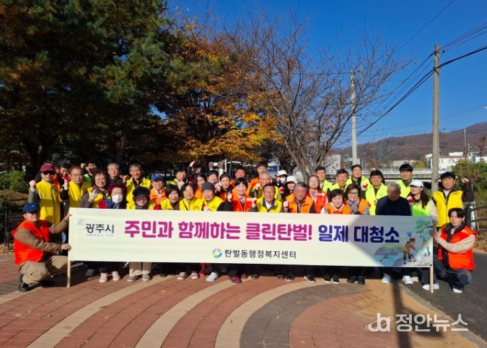 정안뉴스 안정주 기자 | 광주시 탄벌동은 12일 지역 주민과 관계단체, 시 직원 등 60여 명이 참여한 가운데 ‘11월 탄벌동 클린데이(일제 대청소)’를 실시했다.