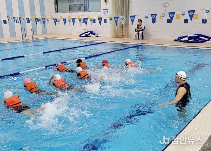 교육은 총 5일간 학급별로 진행됐다. 주요 교육내용은 ▲1일 차 수영장 및 물 적응 ▲2일 차 물속 호흡 및 기구 생존 뜨기 ▲3일 차 맨몸 생존 뜨기 ▲4일 차 잠수 및 체온 유지 ▲5일 차 배면 뜨기와 10m 이동 실습 등 단계별 교육과정으로 구성됐다. 체계적이고 반복적인 실습을 통해 학생들의 생존수영 기술을 효과적으로 향상시켰다.