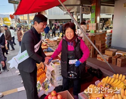 정안뉴스 안정주 기자 | 이현창 전라남도의원(더불어민주당, 구례)은 지난 11월 13일 구례 5일시장을 방문해 '전통시장 장보기 및 기부 캠페인'에 참여했다.