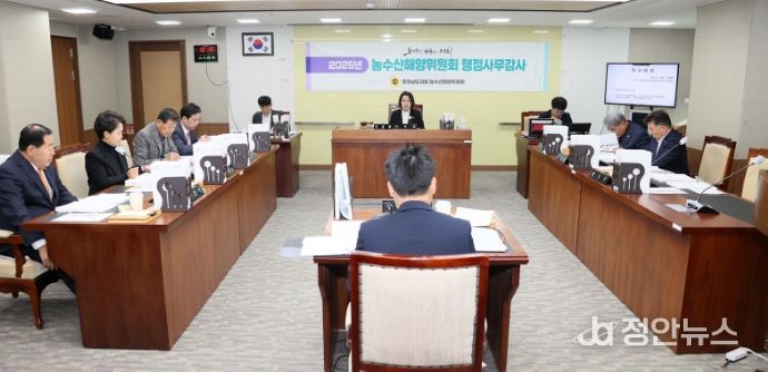 정안뉴스 황도연 기자 | 충남도의회 농수산해양위원회는 17일 충청남도 농축산국(농업정책과·스마트농업과·농식품유통과·농촌재구화과)과 스마트농업본부를 대상으로 2025년도 행정사무감사를 실시했다. 이날 농수해위는 충남 농업의 지속가능성 제고와 농업·농촌 현안 대응을 위한 제도 개선 사항을 점검했다.