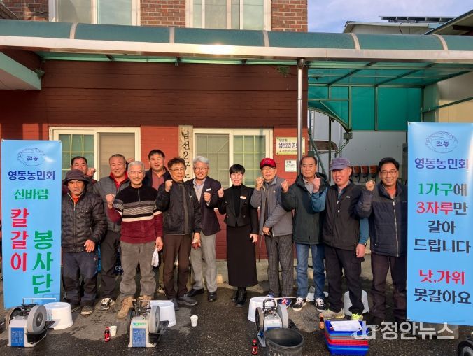 정안뉴스 황은경 기자 | 충북 영동군 농민회(회장 장두섭)는 지역 주민들의 생활 편의를 돕기 위해 마을 단위 칼갈이 봉사활동을 본격 추진하고 있다고 15일 밝혔다.
