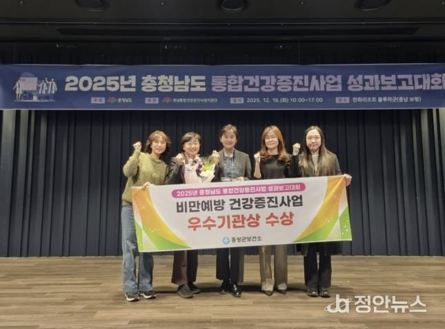 정안뉴스 황도연 기자 | 홍성군은 지난 16일 개최된 ‘2025년 통합건강증진사업 성과보고대회’에서 비만예방 분야 우수기관으로 선정되어 충청남도지사 표창을 수상하는 영예를 안았다. 이번 성과보고대회는 충청남도 내 건강증진사업의 성과를 공유하고 우수사례를 확산하기 위해 마련됐다.