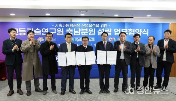 정안뉴스 황도연 기자 | 충남도는 17일 충남도청 상황실에서 지속가능항공유(SAF) 산업육성을 위한 ‘고등기술연구원 충남분원 설립’ 업무협약을 체결했다고 밝혔다.