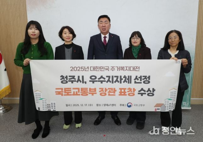 정안뉴스 황은경 기자 | 청주시는 17일 서울에서 열린 ‘2025년 대한민국 주거복지대전’에서 주거복지 특화사업 운영 우수지자체로 선정돼 국토교통부 장관 표창을 수상했다.