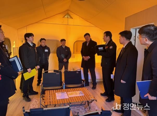 정안뉴스 황도연 기자 | 아산시는 겨울철 야영장에서 발생할 수 있는 화재와 일산화탄소 중독 등 안전사고를 예방하기 위해 18일 문화체육관광부, 충청남도, 아산소방서, 한국전기안전공사 등 관계기관과 함께 합동 안전점검을 실시했다.