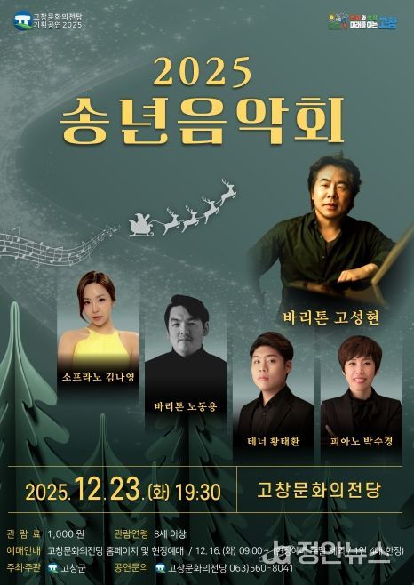 정안뉴스 안정주 기자 | 고창군이 오는 23일 저녁 7시30분 고창문화의전당에서 ‘2025년 송년음악회’를 연다.